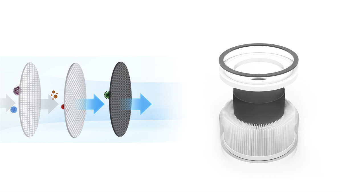 3 Levels Air Cleaning System traps and destroys pollutants layer by layer