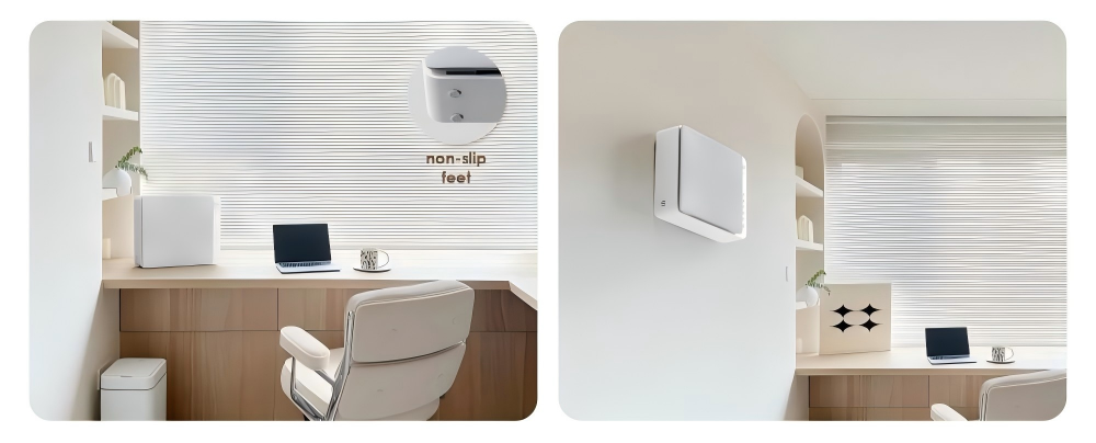 You can mount it on the wall to free up floor space, or stand it on a desk with its non-slip feet. Either way, it simply belongs.